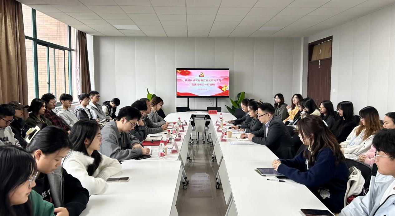 11月4日我院与长城证券浙江分公司党支部,以党建为纽带续写校友情谊,共同举办党建共建签约仪式,长城证券浙江分公司党支部书记,杭州文一西路营业部总经理,2010届校友葛佩玲,副总经理兼组织委员赵仲杰、宣传委员董紫娴出席本次活动。